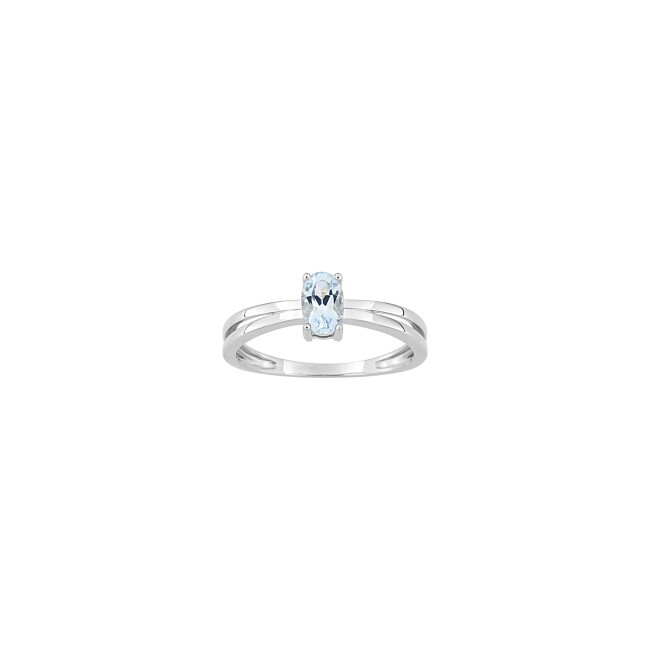 Bague en or blanc, diamant 0.02ct et aigue-marine