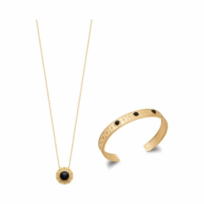Collier en plaqué or et agate noire, 45cm