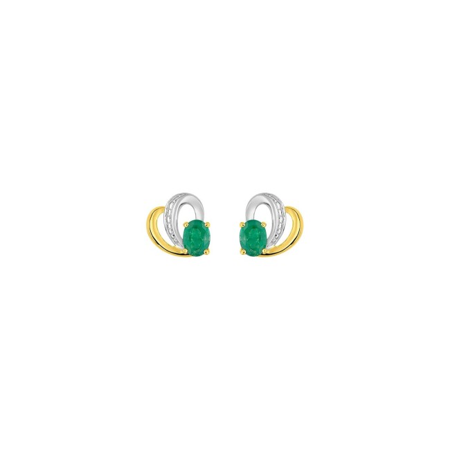 Puces d'oreilles en or jaune rhodié et émeraudes
