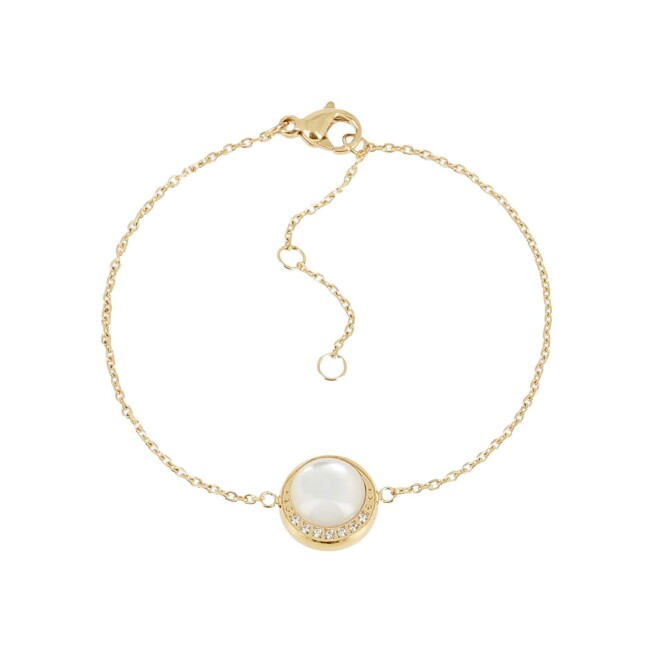 Bracelet Zag Oria en acier doré, oxyde de zirconium et nacre