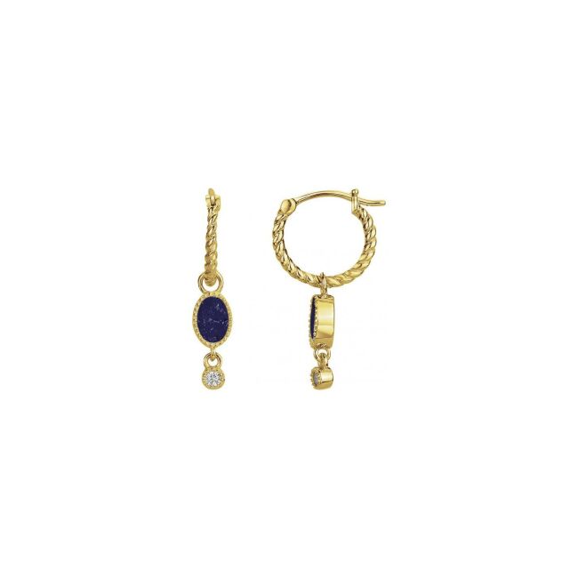 Boucles d'oreilles en plaqué or et oxyde de zirconium bleu saphir et blanc