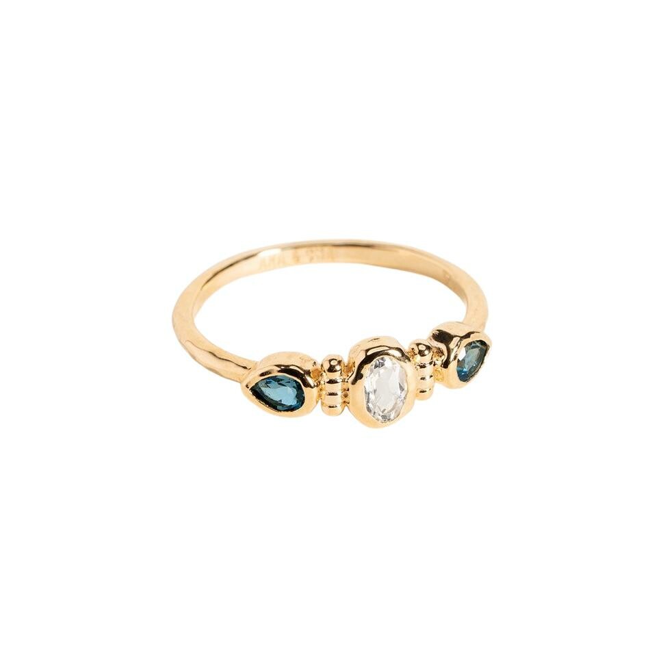 Bague Ana & Cha Carla en plaqué or, topaze bleue et topaze blanche Description détaillée