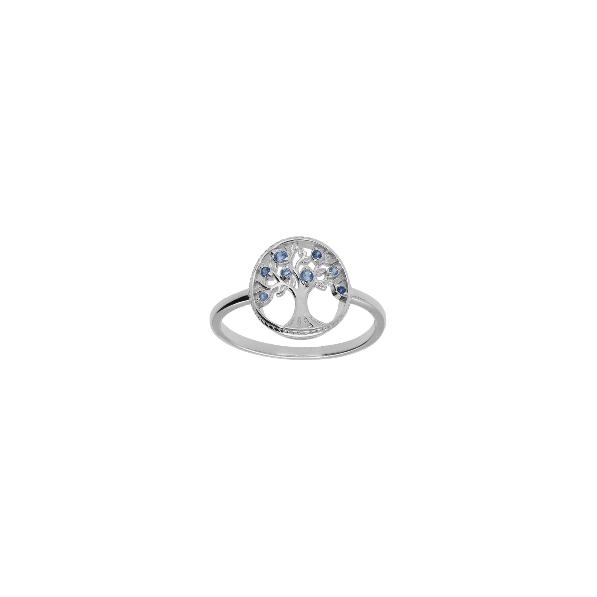 Bague arbre de vie en argent rhodié et oxydes de zirconium, taille 56 Description détaillée