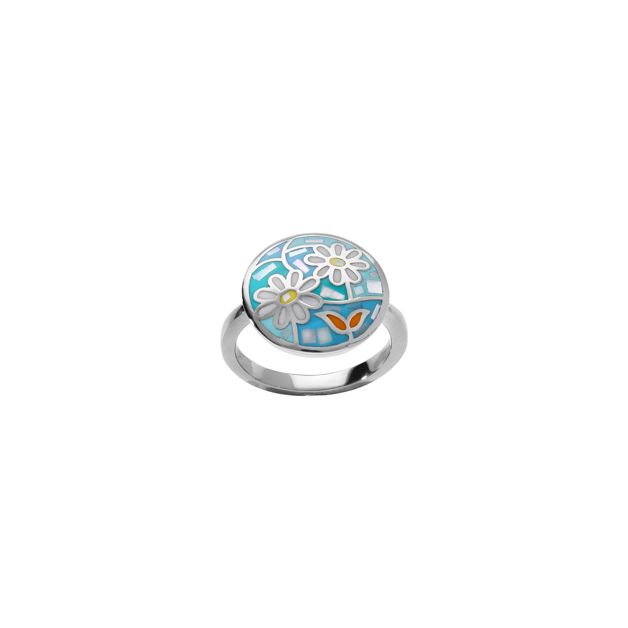 Bague en acier, résine et nacre, taille 57 Description détaillée