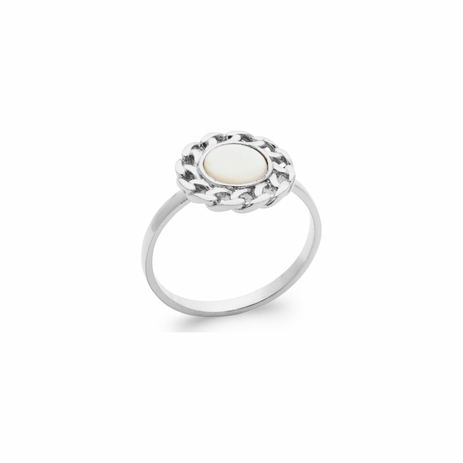 Bague en argent rhodié et nacre Description détaillée