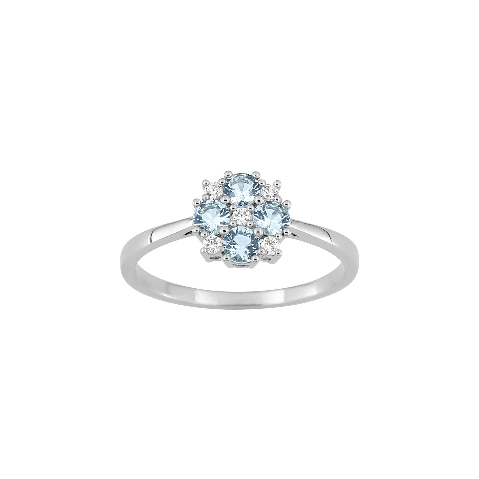 Bague en argent rhodié et oxyde de zirconium bleu ciel et blanc Description détaillée