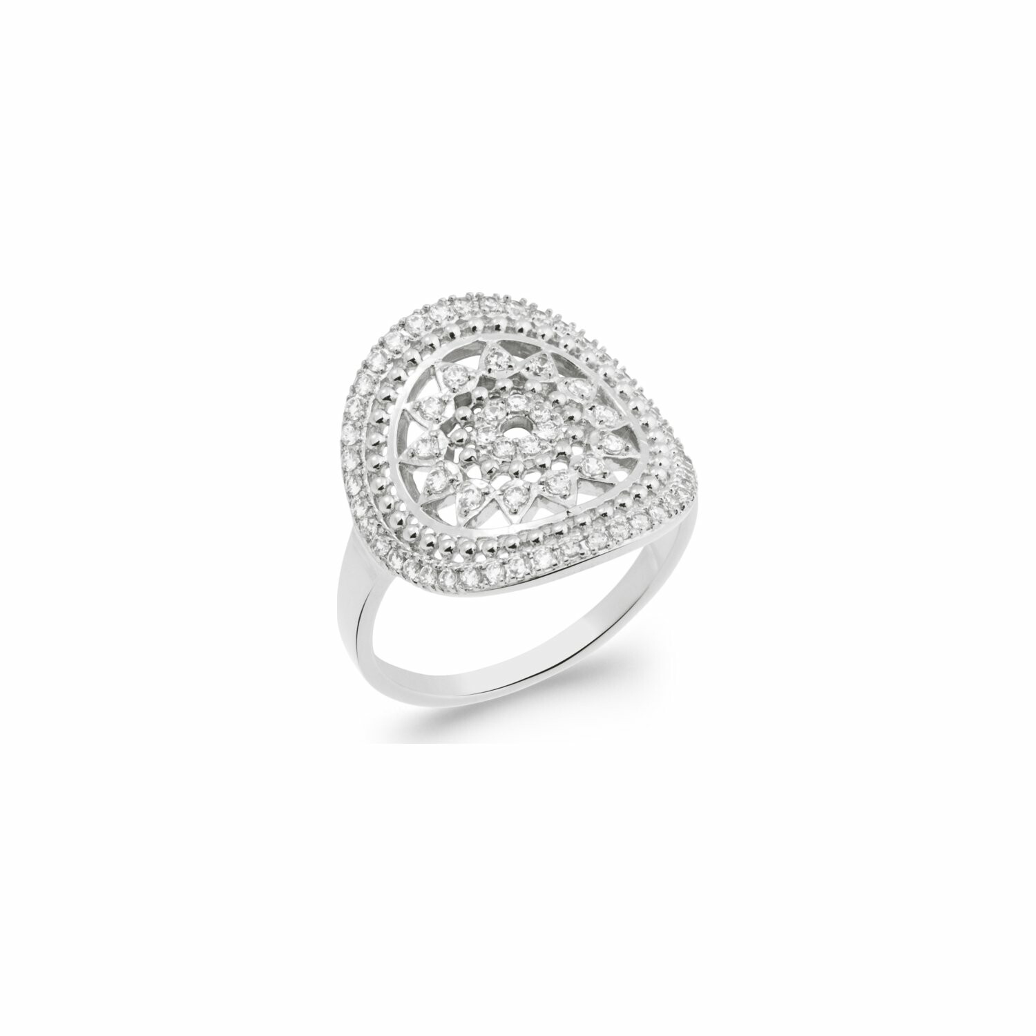Bague en argent rhodié et oxydes de zirconium Description détaillée