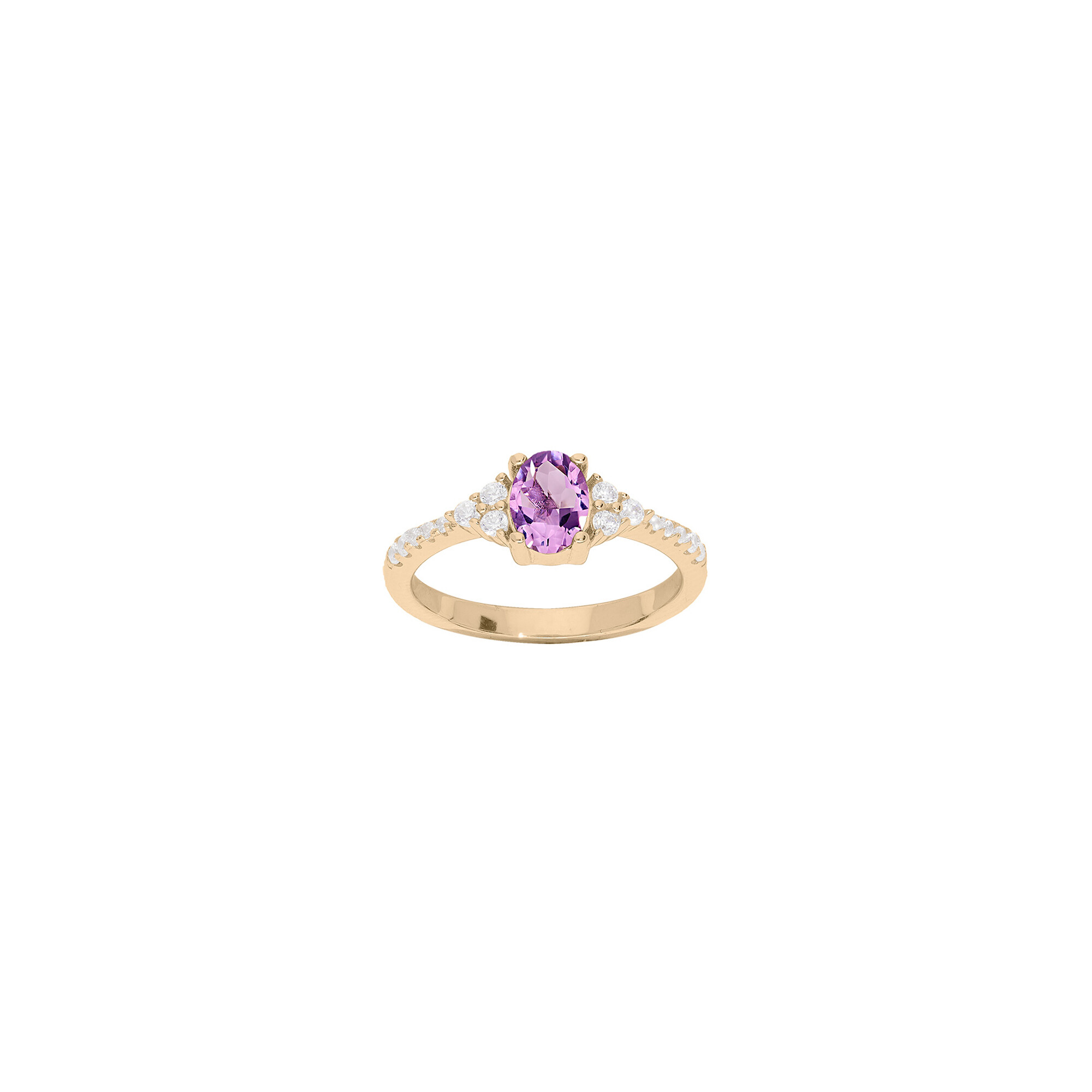 Bague en plaqué or, améthyste et oxydes de zirconium, taille 56 Description détaillée