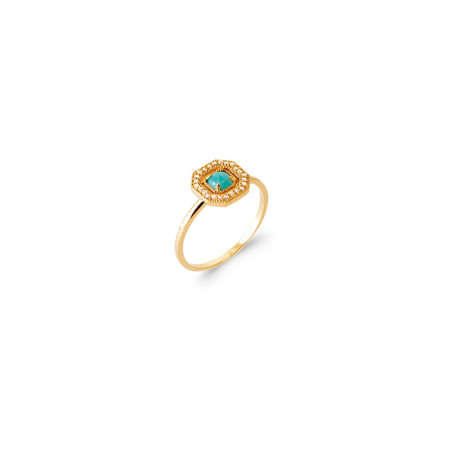 Bague en plaqué or, oxydes de zirconium et pierre de couleur Description détaillée