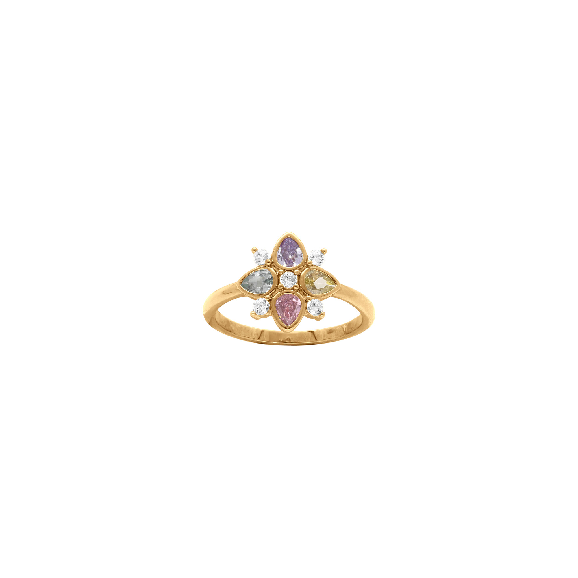 Bague fleur en plaqué or et oxydes de zirconium, taille 56 Description détaillée