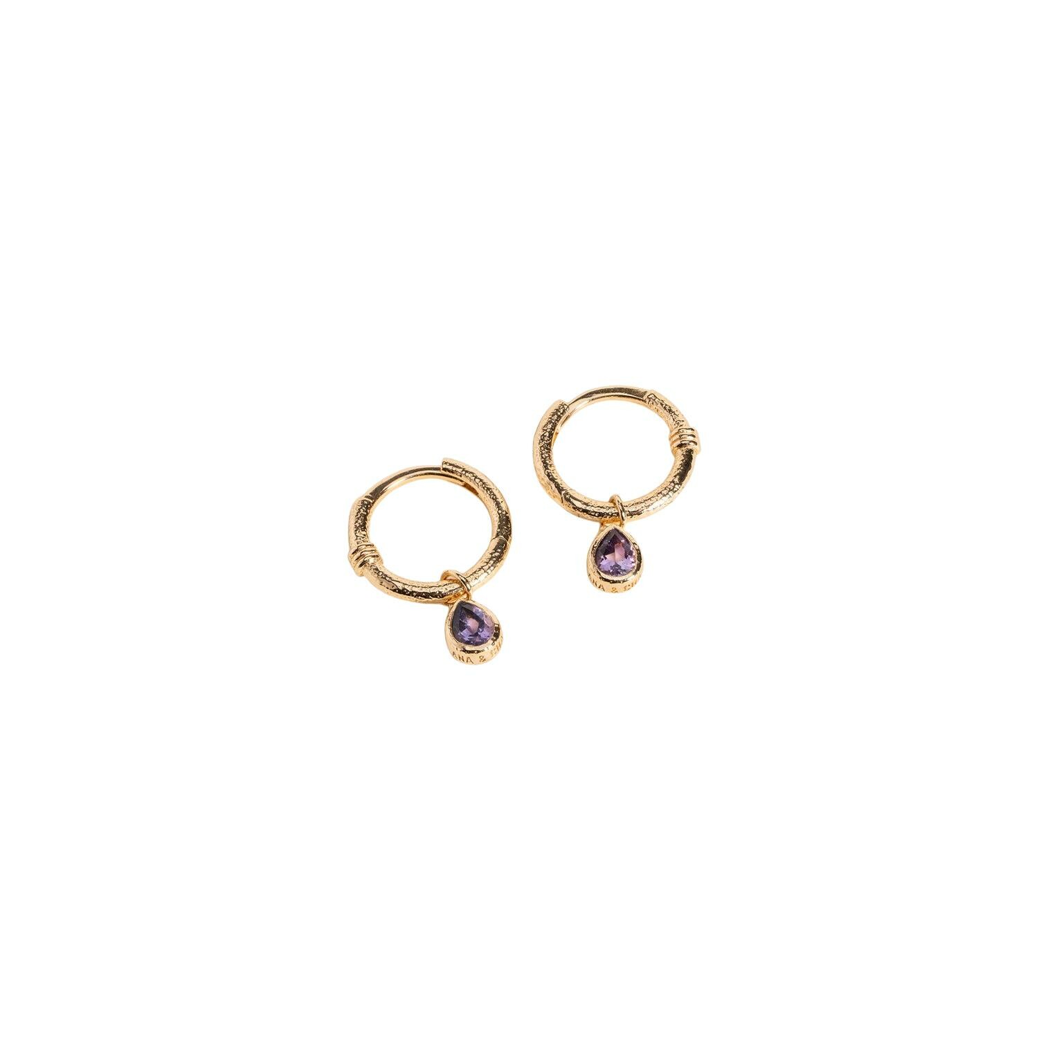 Boucles d'oreilles créoles Ana & Cha Tess en plaqué or et améthyste Description détaillée
