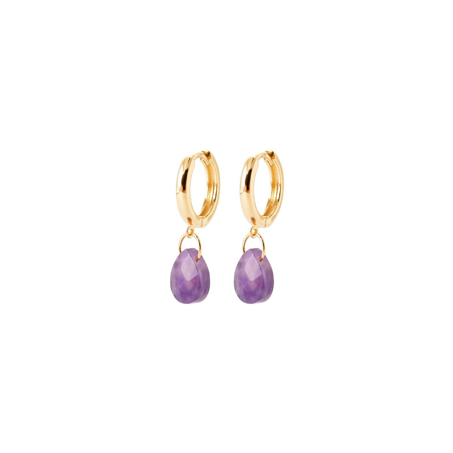 Boucles d'oreilles créoles en plaqué or et améthyste Description détaillée