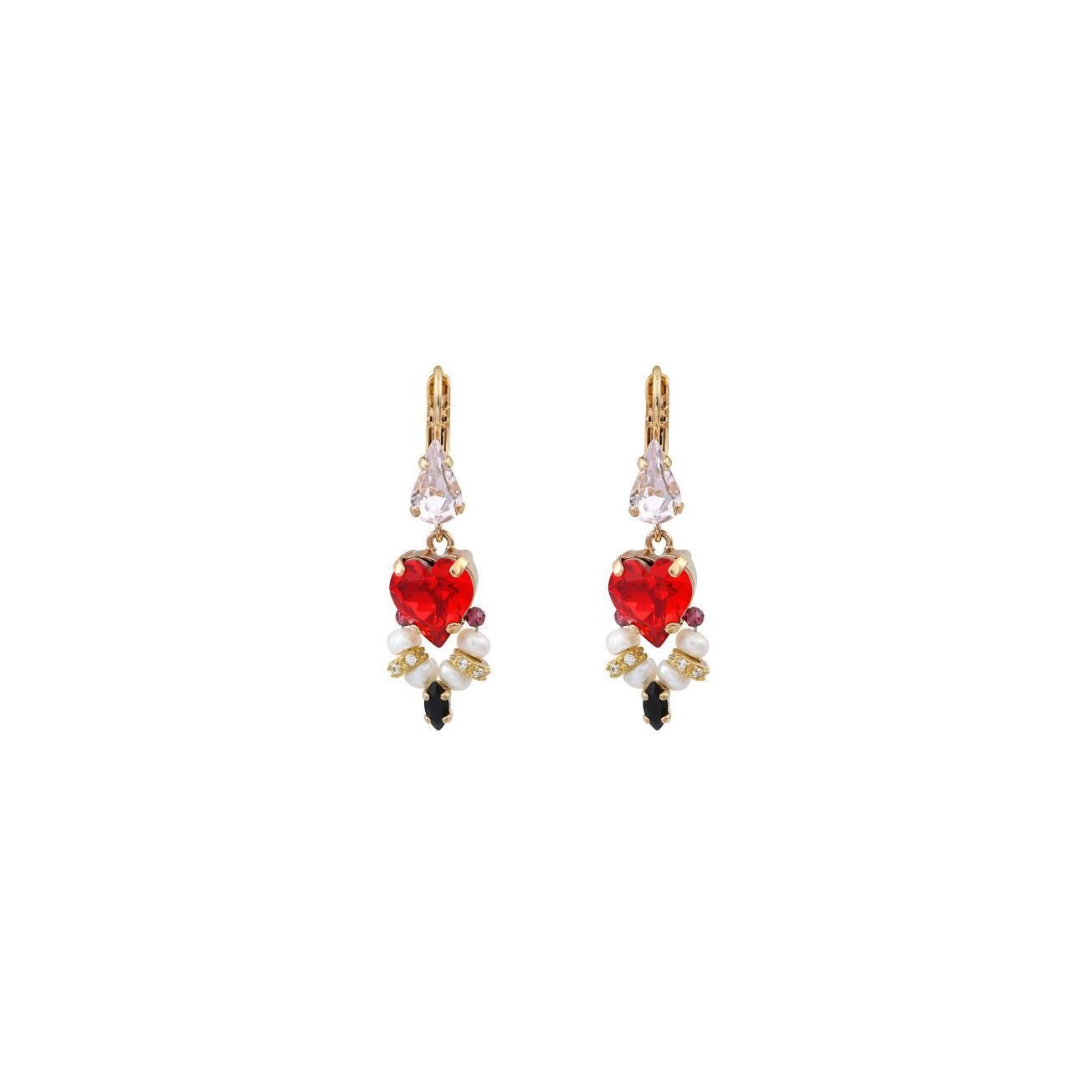 Boucles d'oreilles dormeuses Satellite Joyce en métal doré à l'or fin, cristaux, perles de rivière et grenats Description détaillée