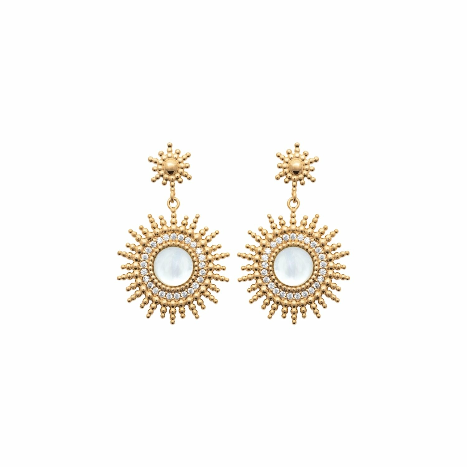 Boucles d'oreilles en plaqué or, nacre et oxydes de zirconium Description détaillée