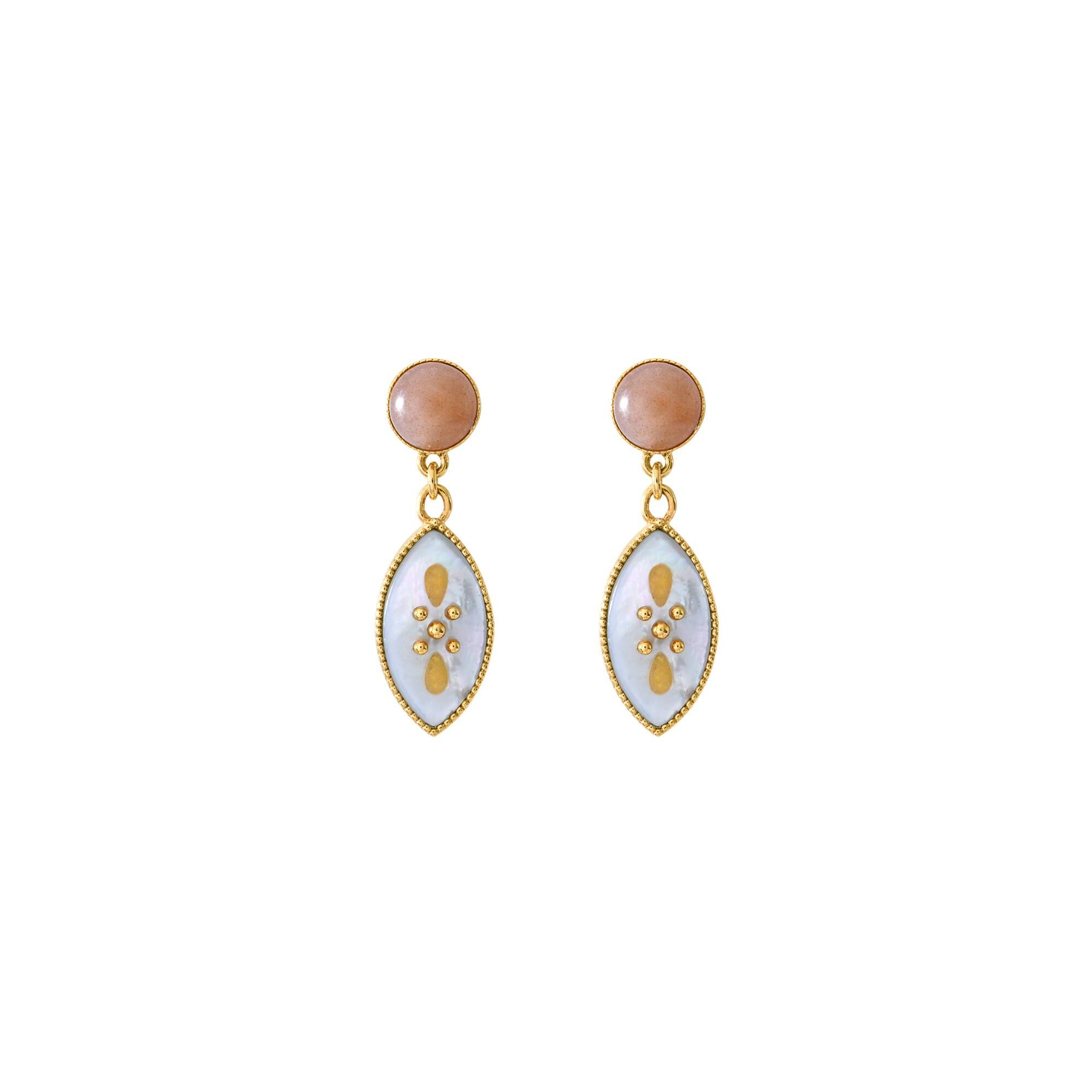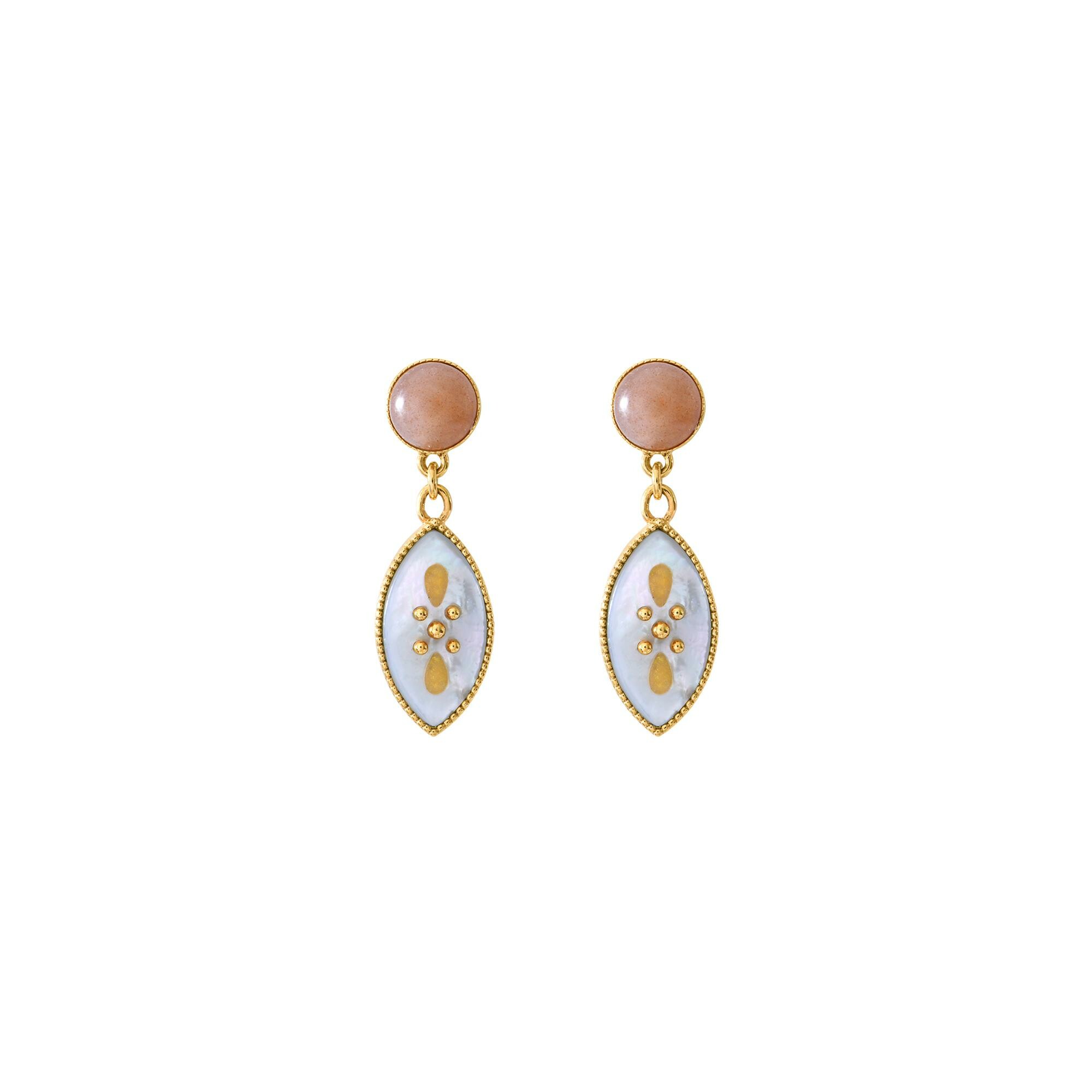 Boucles d'oreilles Satellite Capraia en métal doré à l'or fin, résine et nacre Description détaillée