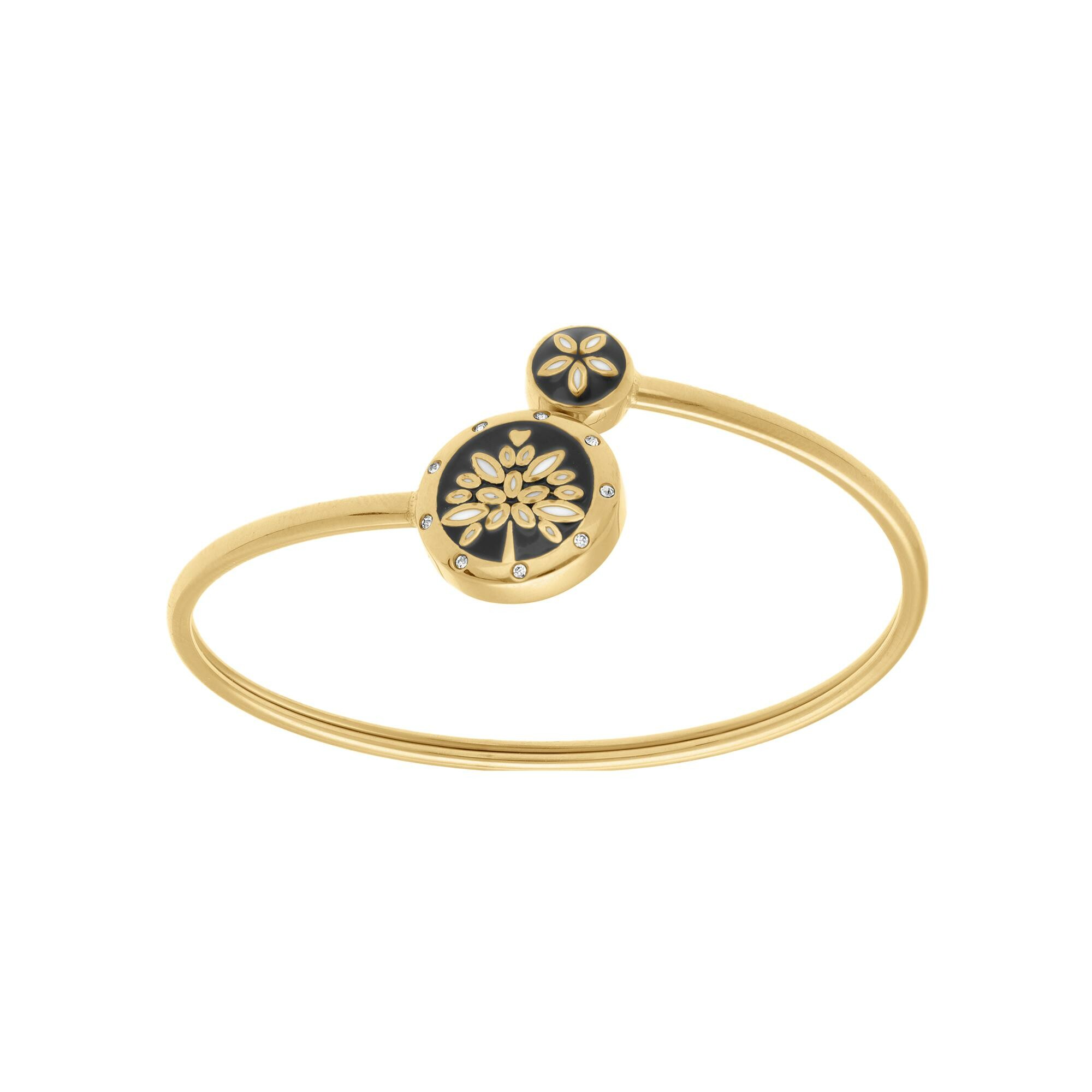 Bracelet acier doré jaune stella mia jonc flexible résine noire et blanche Description détaillée