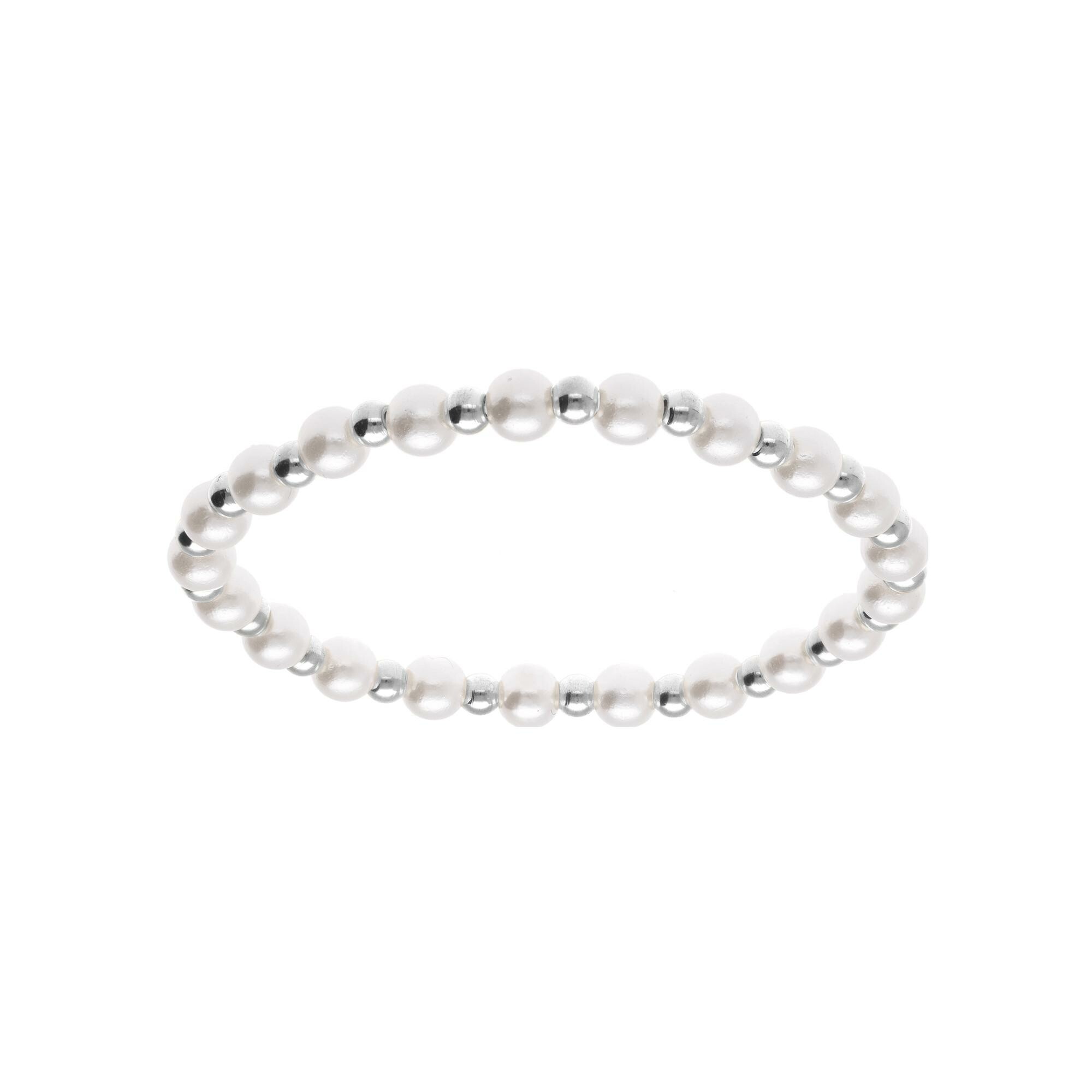 Bracelet acier extensible perle blanche imitation Description détaillée