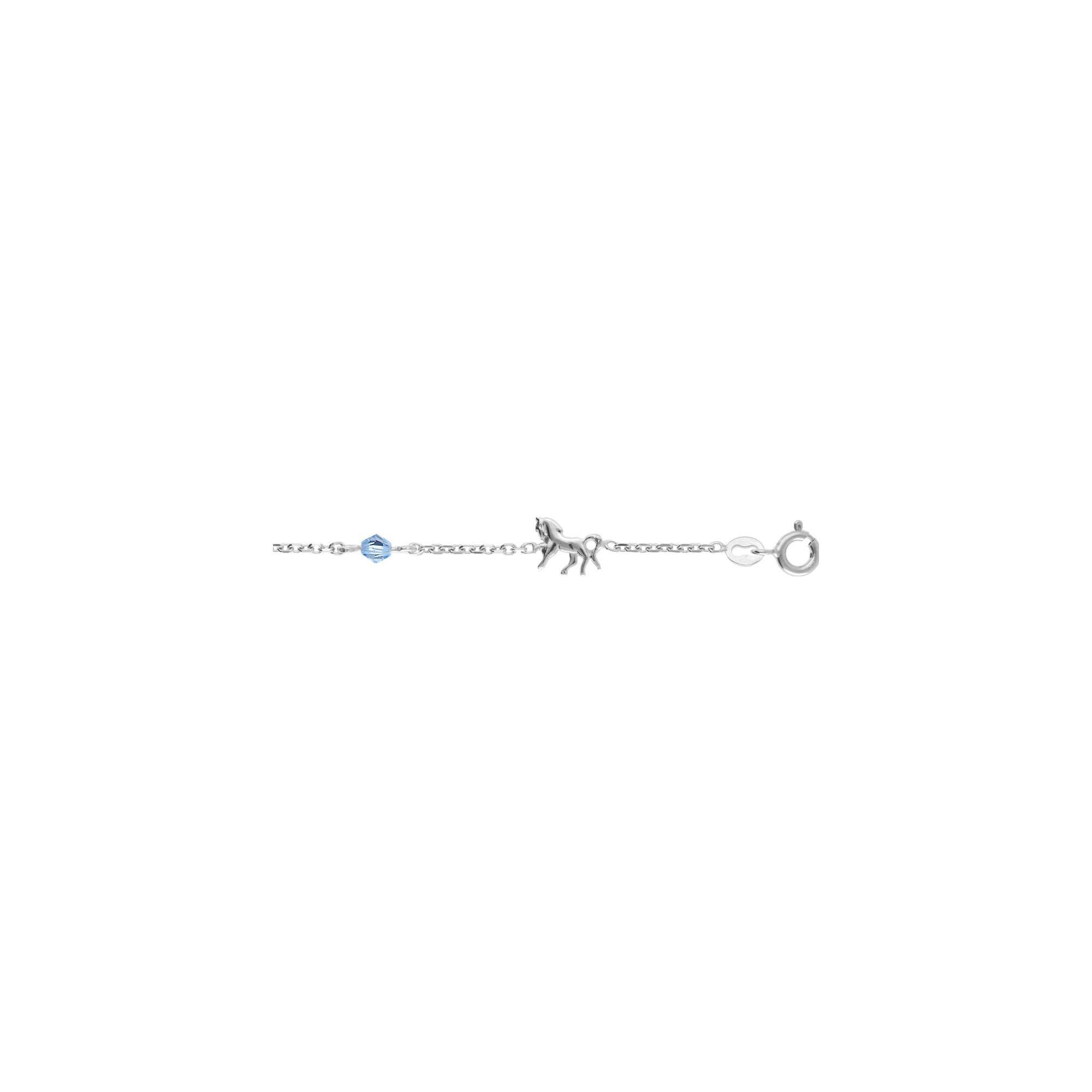 Bracelet argent rhodié motif cheval pierre ciel 17,5cm réglable 15cm Description détaillée