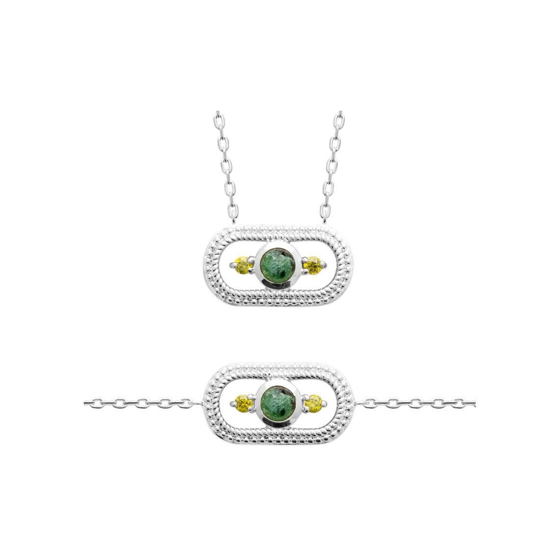 Bracelet en argent et jaspe, 18 cm Description détaillée