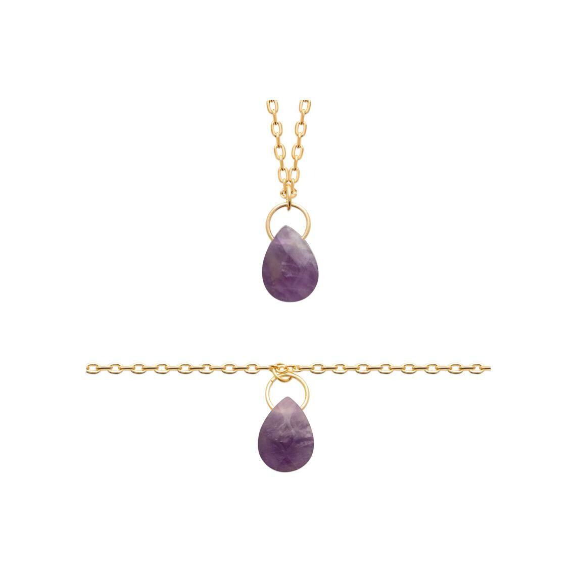 Bracelet en plaqué or et améthyste, 18 cm Description détaillée