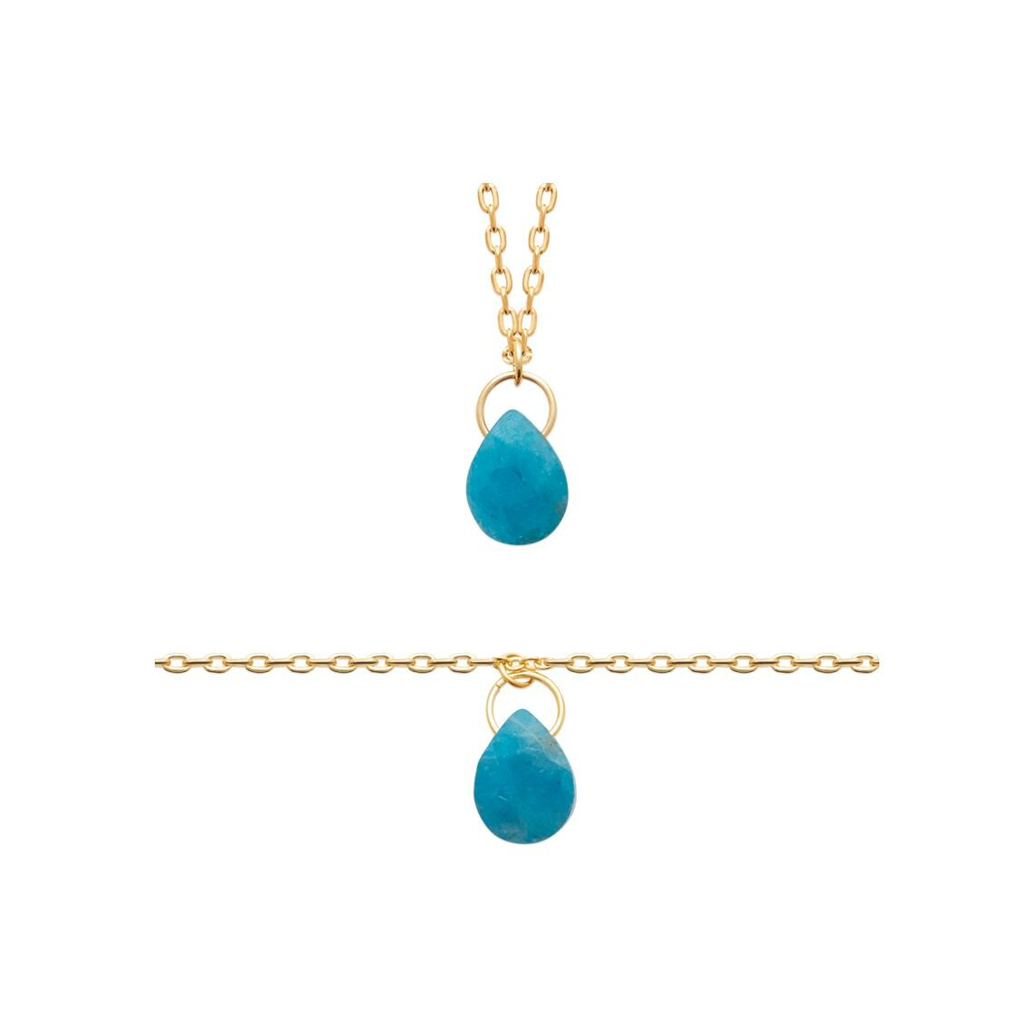 Bracelet en plaqué or et apatite, 18 cm Description détaillée