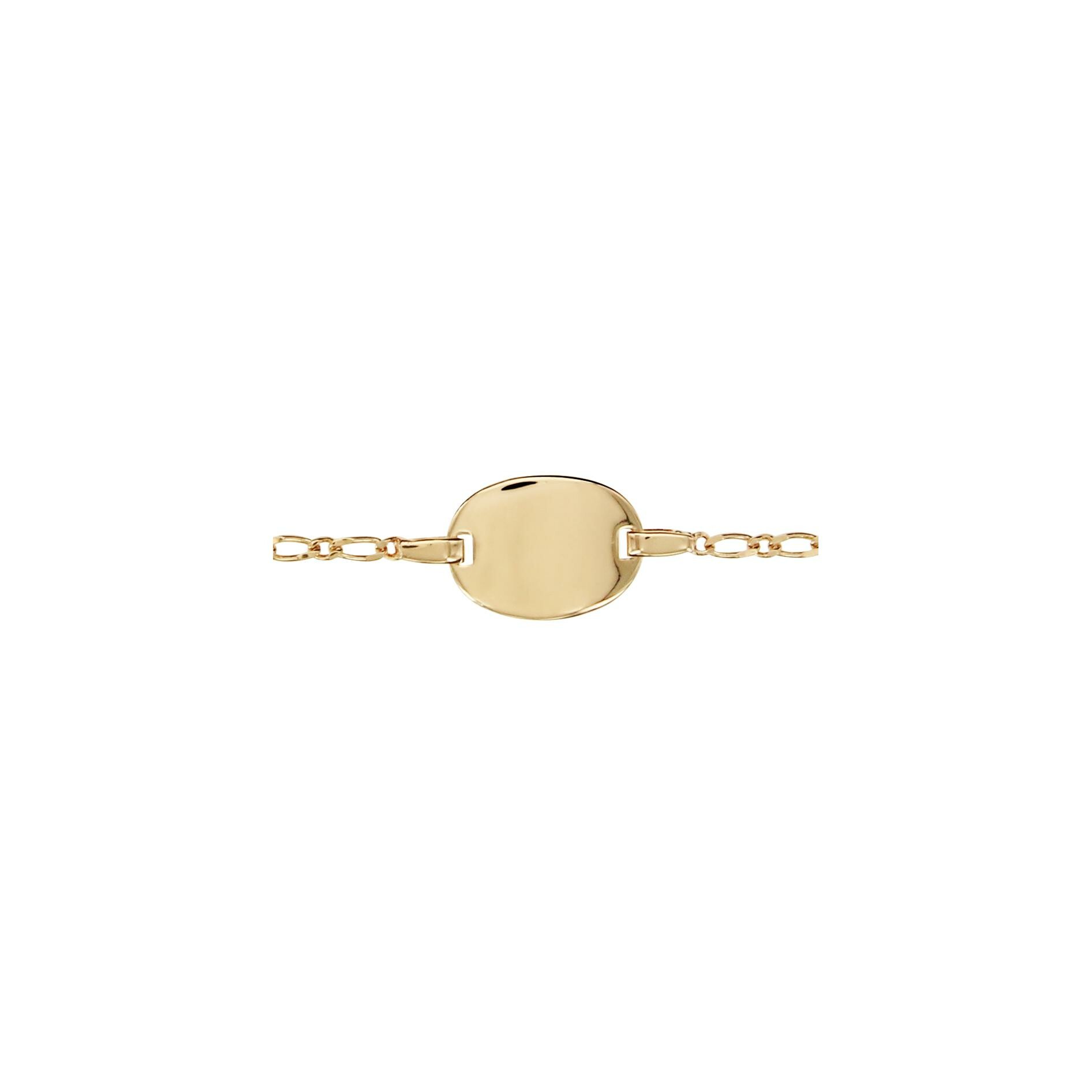 Bracelet identite bebe 1+1 15/13cm plaque ovale plaqué or Description détaillée