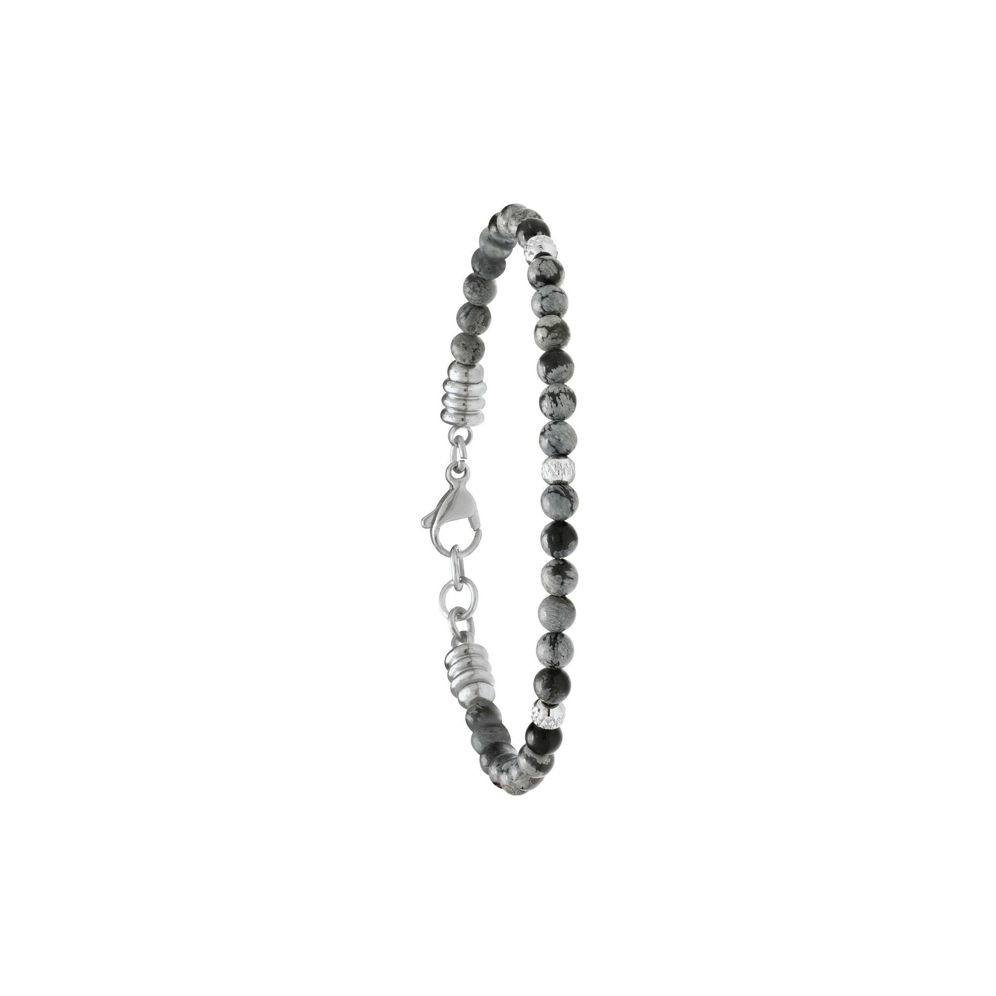 Bracelet Jourdan Bijoux Halo en acier et obsidienne neigeuse Description détaillée