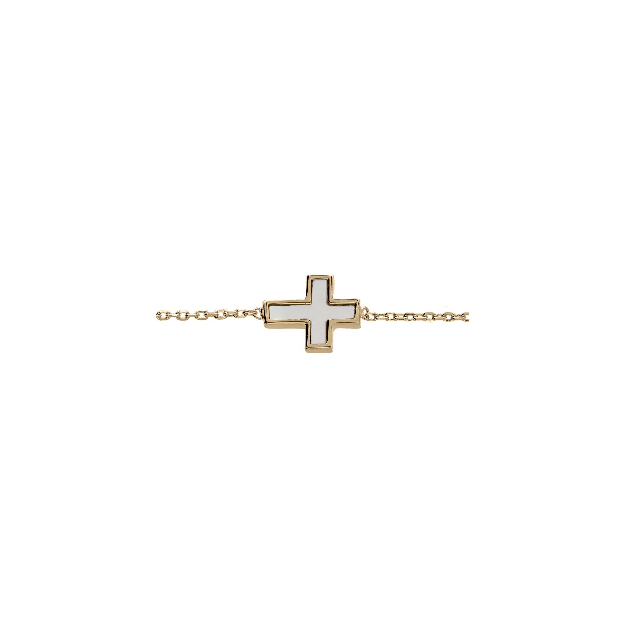 Bracelet plaqué or croix nacre blanche 18cm réglable 16cm Description détaillée