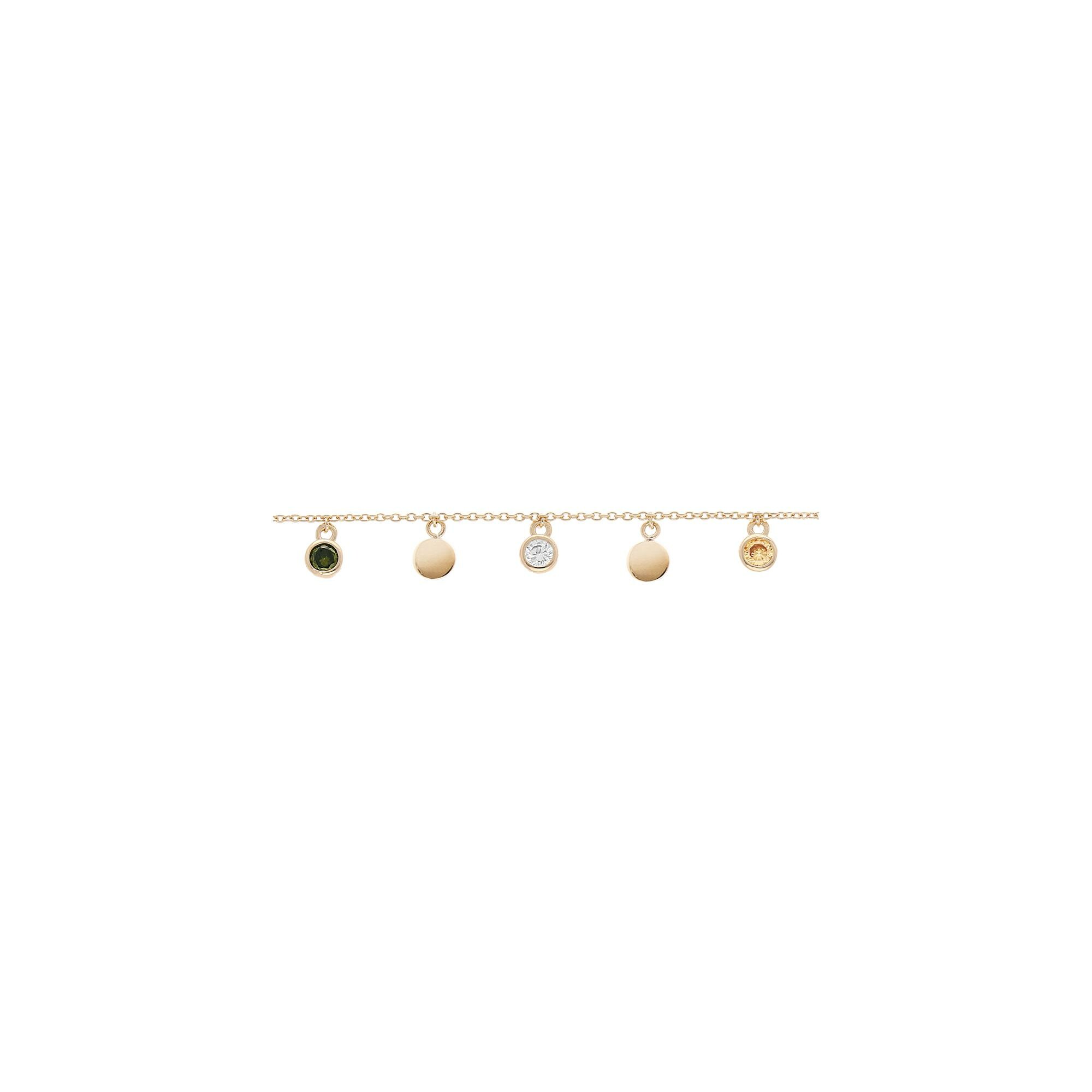 Bracelet plaqué or pampilles et oxydes multi couleurs sertis 16+3cm Description détaillée