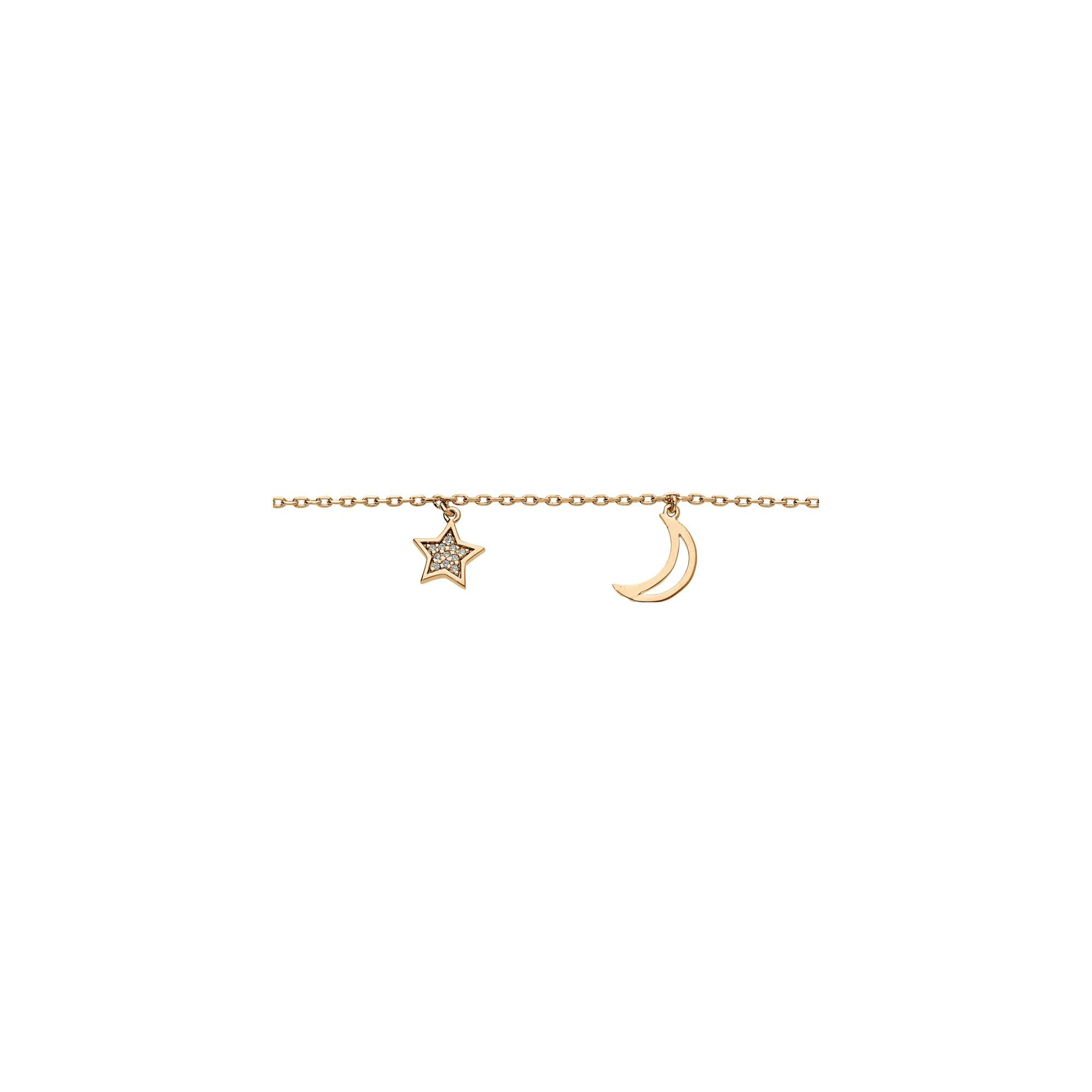 Bracelet plaqué or pampilles lune et étoile oxydes blancs sertis 16+3cm Description détaillée