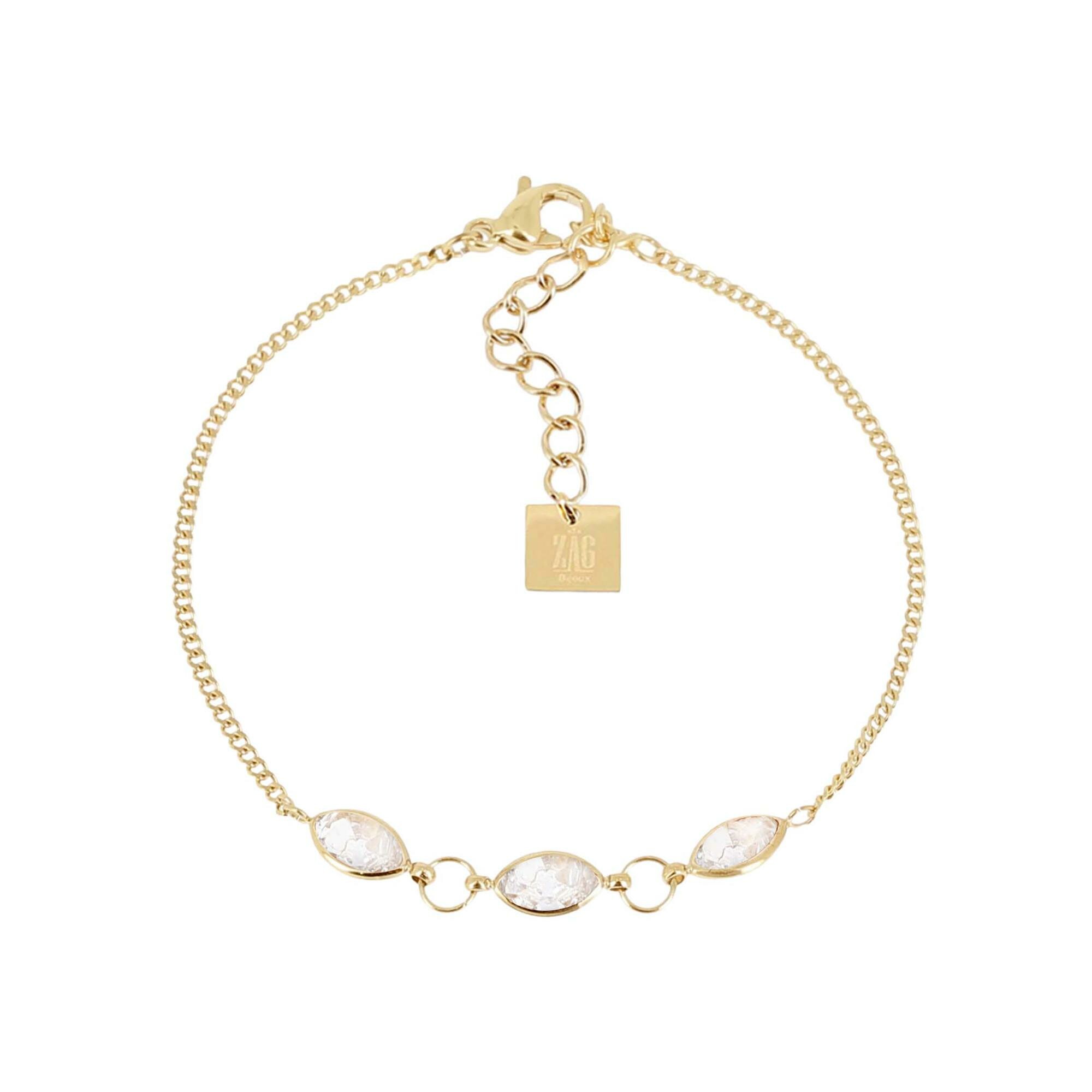 Bracelet Zag Alberta en acier doré et oxyde de zirconium, Blanc Description détaillée