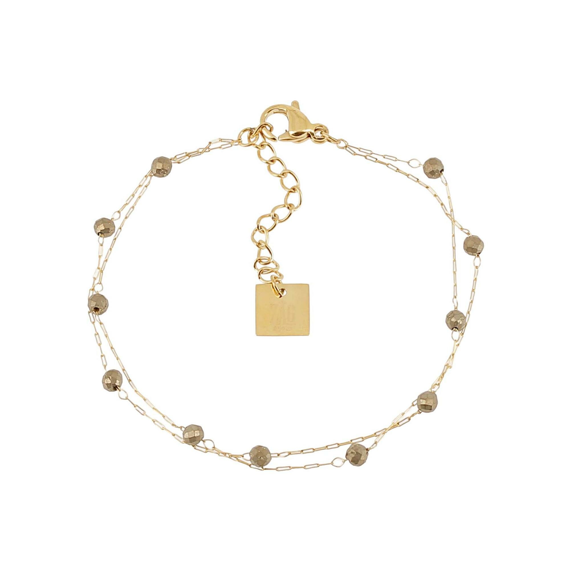 Bracelet Zag Hinaku en acier doré et pyrite Description détaillée