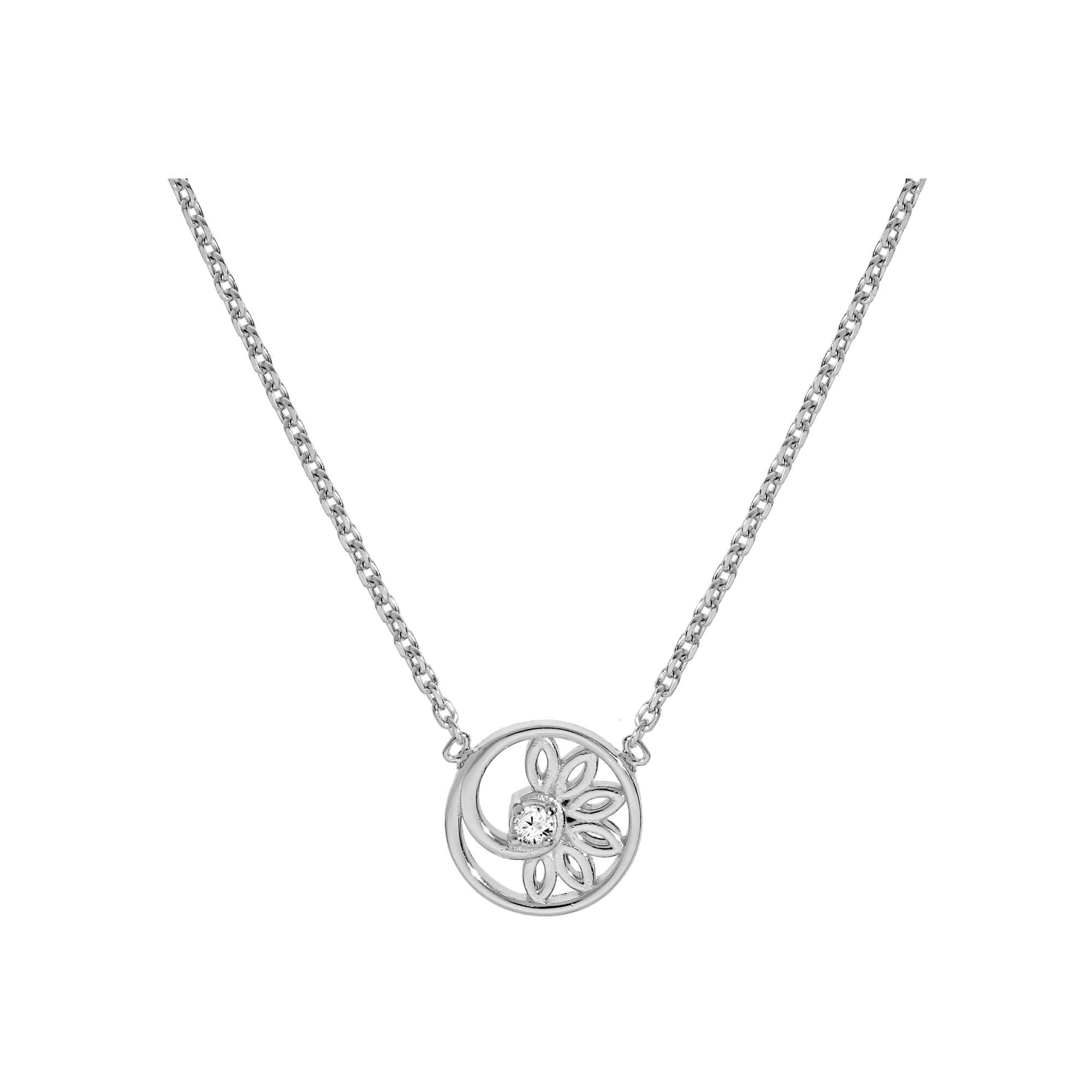 Collier argent rhodié fleur oxydes blancs sertis 38+4cm Description détaillée