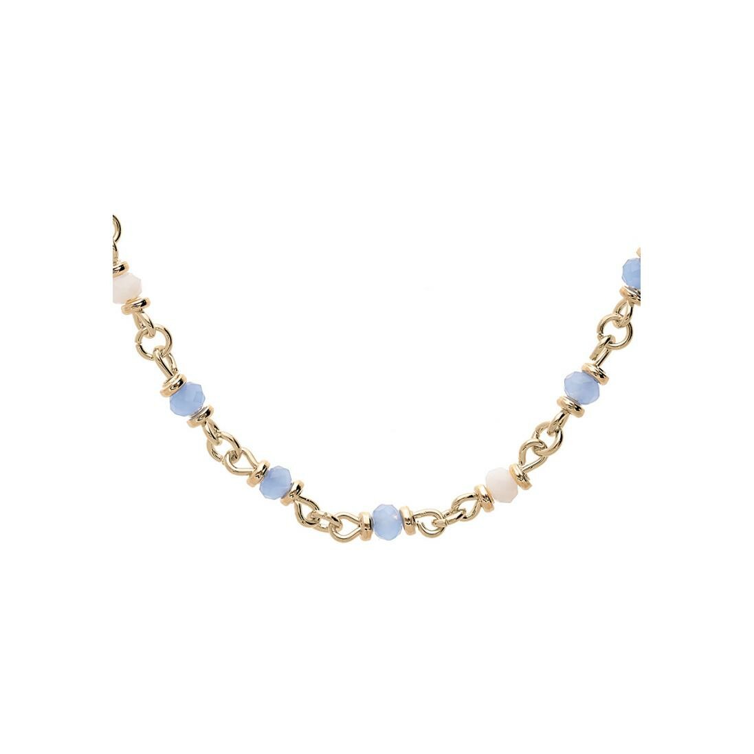 Collier en plaqué or et pierres de couleurs bleues et blanches Description détaillée