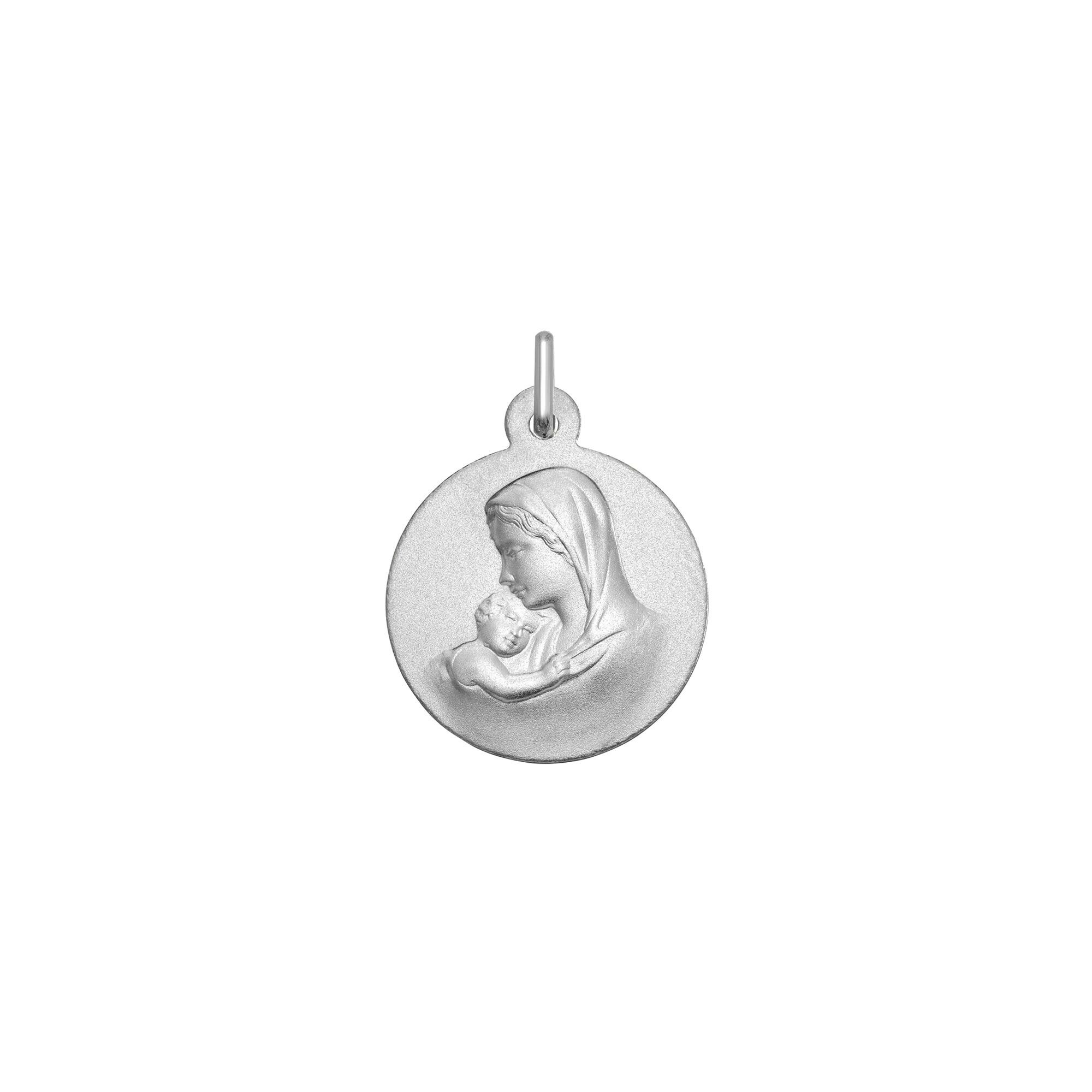 Médaille Vierge à l'enfant en argent rhodié Description détaillée