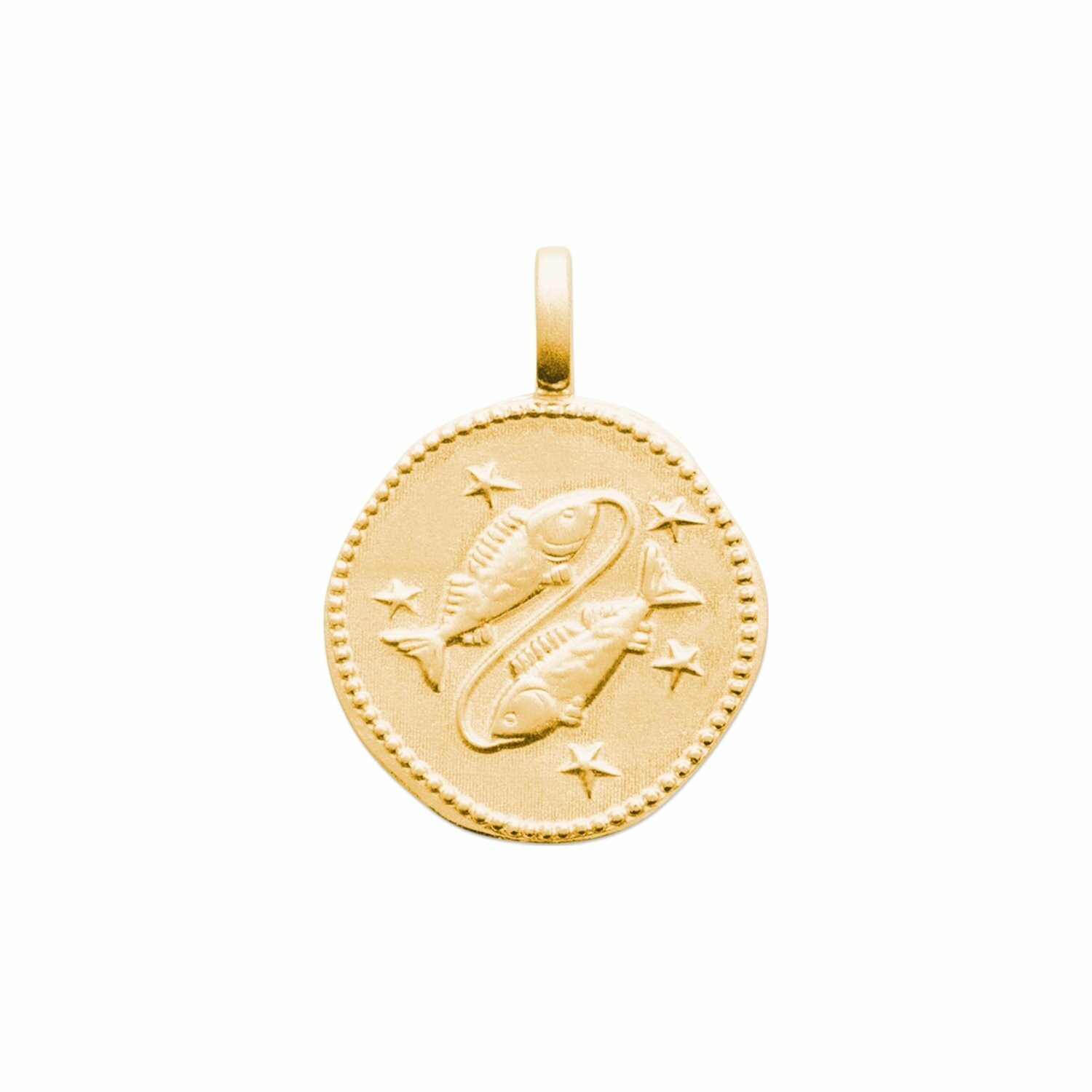 Médaille du zodiaque "Poissons" en plaqué or Description détaillée